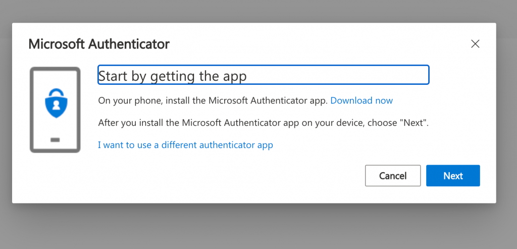 3) Download the Microsoft Authenticator App to your phone. You can get it by searching for it in the App Store, or click the Download Now button from your device. You can also click here for a link.