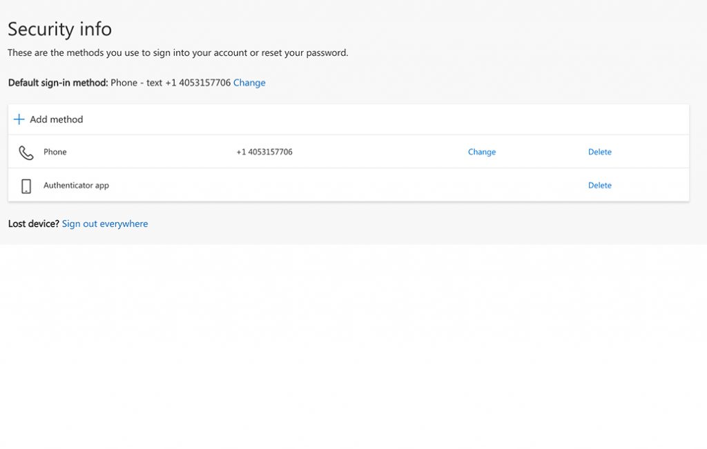 1) Click Delete next to the device you want to remove. After removal, click Add Method at the top left.